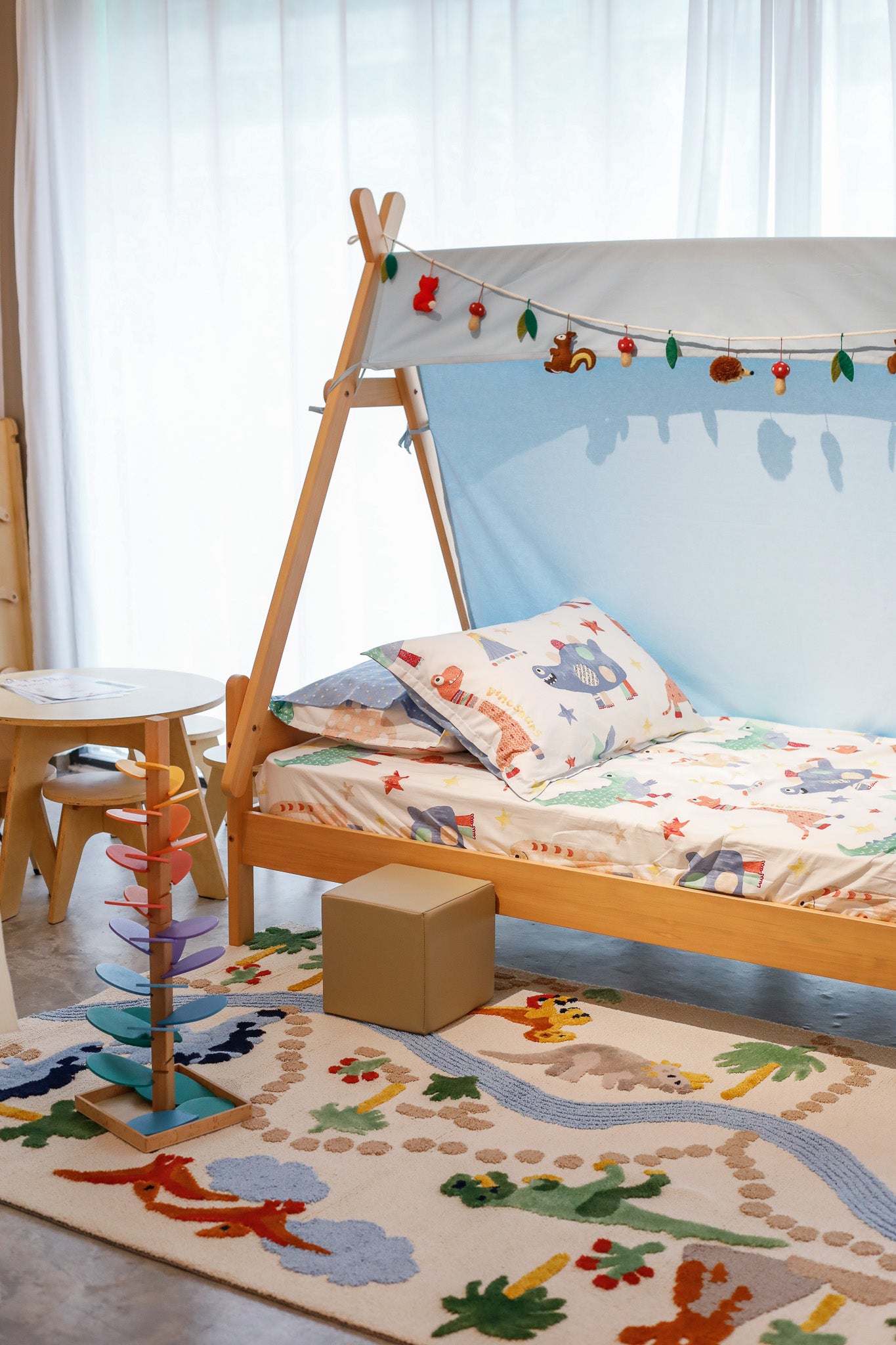 Crafted with soft, child-friendly materials, this rug provides a cozy and durable surface, perfect for playtime or as a fun addition to any bedroom or playroom décor. Its colorful design sparks curiosity and creativity, making it a delightful centerpiece for little explorers.