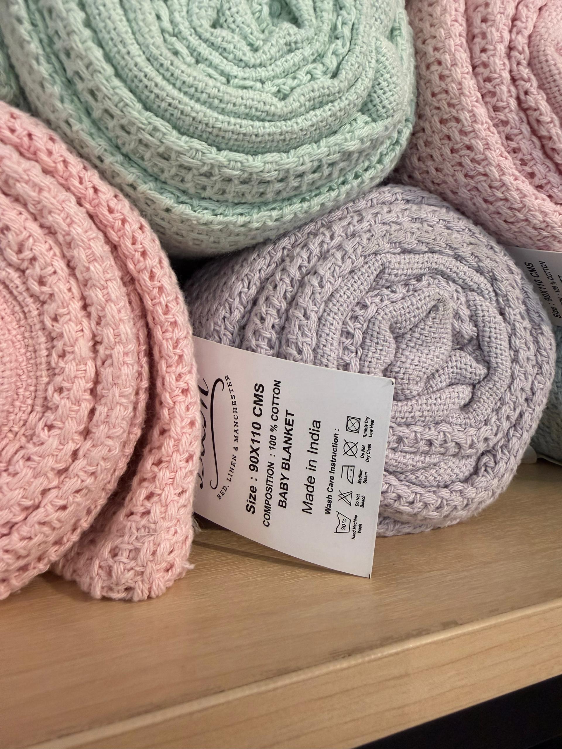 100% Cotton Kids Knitted Blanket - 90 x 110cm