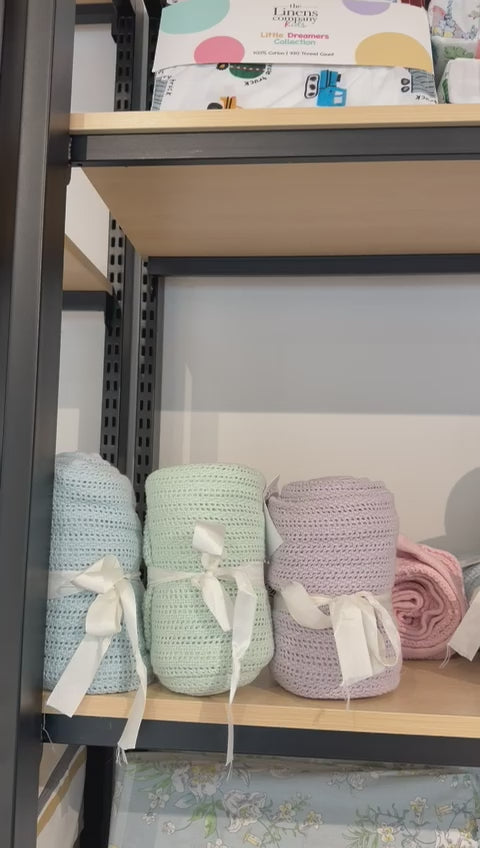 Whether you are tucking them into a crib for a peaceful night's sleep or seeking a cozy layer for stroller walks, our blankets offer a timeless, high-quality touch that ensures your baby feels safe and comfortable in any setting. Now available in a beautiful palette of four soothing pastel colours—soft pink, refreshing mint green, classic sky blue, and gentle lilac.