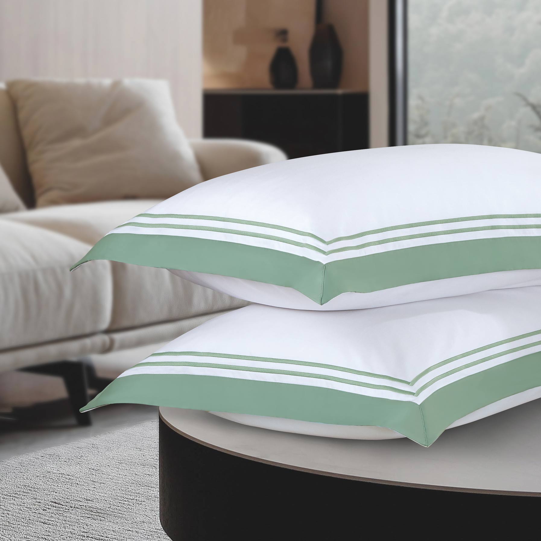 Create a clean, crisp, and cosy bedroom with Tre Misto Pebble that earns its name from its earthy-toned embroidered border. The subtle tone and stripped-down simplicity of this luxe Egyptian Cotton set greatly appeals to the minimalist senses.