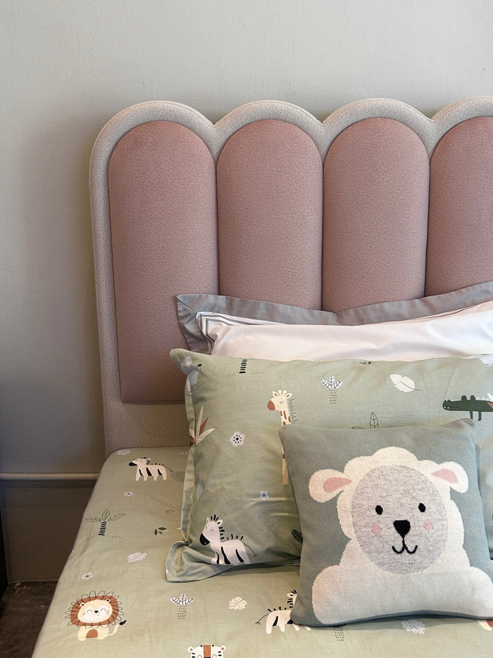 Designed for both style and comfort, the Lollipop bed frame is crafted with high-quality upholstery, ensuring a cozy and luxurious feel. As with all our bed frames, we customize the divan and scale the headboard to achieve a total height of around 24 inches (2 feet) from the ground to the top of the mattress, providing an ideal sleeping experience.