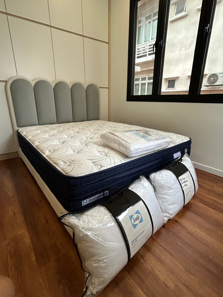 The Lollipop Bed Frame is a playful yet sophisticated design that brings a unique charm to any bedroom. Featuring a dual-tone wavy headboard, it creates a striking visual contrast while maintaining a soft, inviting appeal. The gentle curves of the headboard add a touch of elegance, making it a perfect statement piece for those who love modern aesthetics with a fun twist.