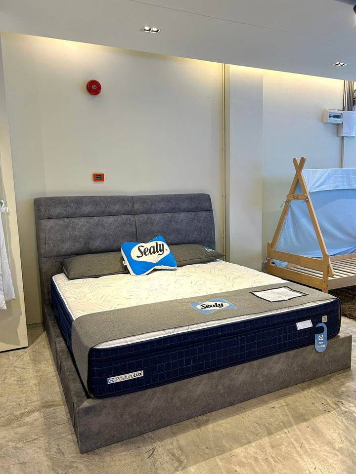 This bed frame is available in fabric or suede upholstery, allowing you to choose the texture that best suits your style.