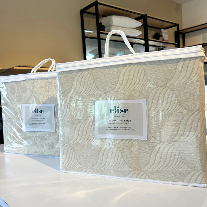 Transform your bedroom into a serene retreat with the Hampton Jacquard Matelassé Bedspread Set. Designed with a graceful wave-like pattern that adds depth and texture, this bedspread brings understated luxury to any space. The subtle sheen and soft handfeel create a look that’s both refined and inviting, perfect for elevating everyday bedding or impressing overnight guests.