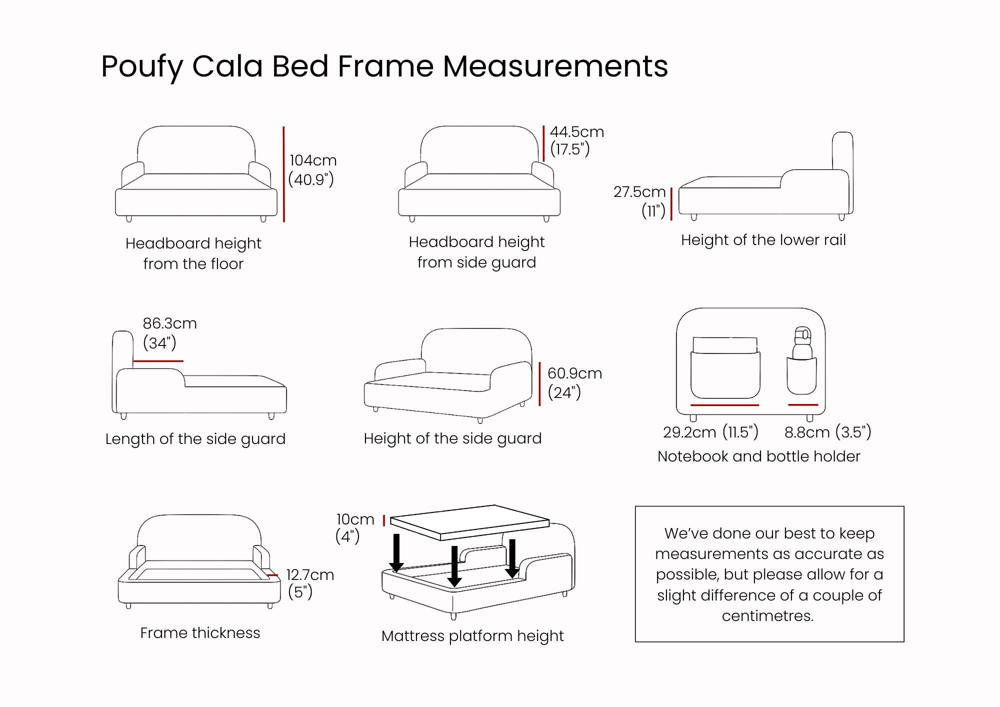 Meet the Poufy Cala Bedframe, a modern bed frame thoughtfully designed for toddlers and kids who love comfort, and for parents who want function and safety. With its pillowy-soft, waterproof fabric and extra-cushioned design, the Clara brings a cozy and secure feel to any child’s room.