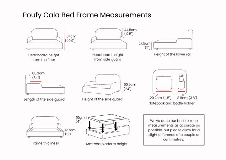With its clean curves and cloud-like silhouette, the Poufy Cala bed frame blends playful design with everyday practicality, perfect for sweet dreams and stylish spaces alike.