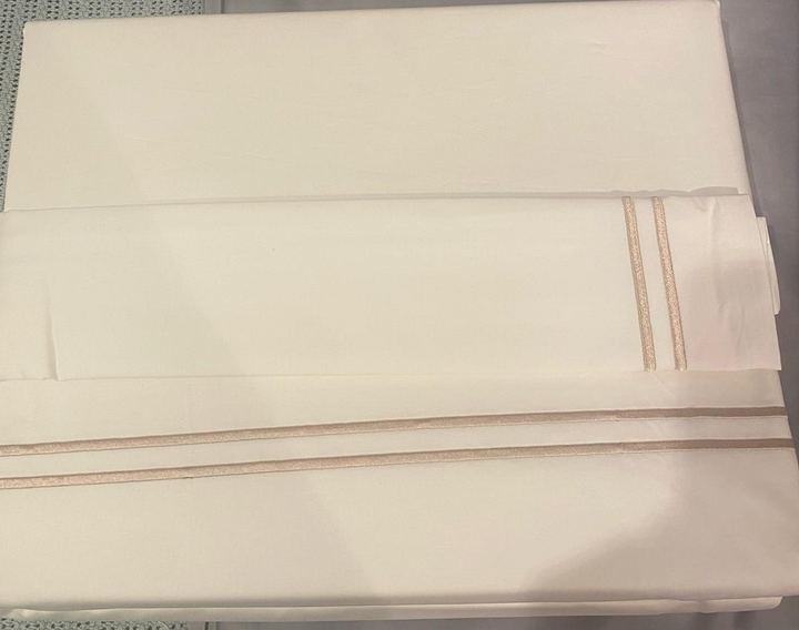 Hotel Collection: Pratesi White With Beige Two Lines Bedset