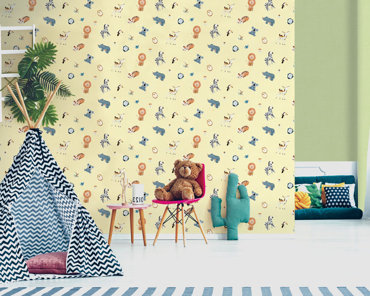 Turn your little explorer’s room into a wild adventure with our Safari Buddies wallpaper. Featuring adorable animals like lions, zebras, tigers, and koalas, this cheerful design is set against a soft yellow background that instantly brightens up any space. Perfect for nurseries, playrooms, or bedrooms, this wallpaper adds a playful, safari-themed touch while keeping the vibe cozy and fun.