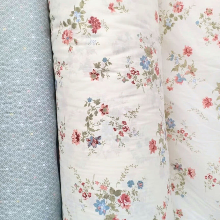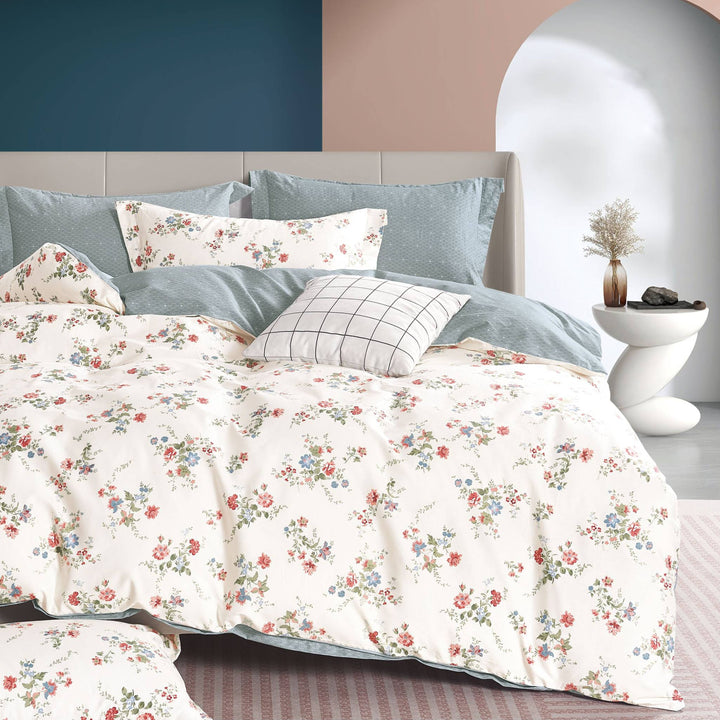 Bring timeless charm to your bedroom with 'Victorine'. Featuring a delicate array of blossoms in soft, red and blue refreshing tones, this design effortlessly blends sophistication with a cozy, welcoming vibe. Whether you're curling up for a restful night's sleep or simply refreshing your space, this floral bed linen adds a touch of nature-inspired beauty to any bedroom.